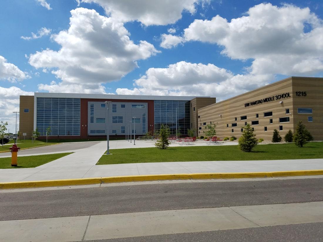 Erik Ramstad Middle School is located in Minot, North Dakota. School includes a classroom wing, gymnasium, natatorium, cafeteria, kitchen, science classroom laboratories, art room, music room, weight room, FCS, and shop.